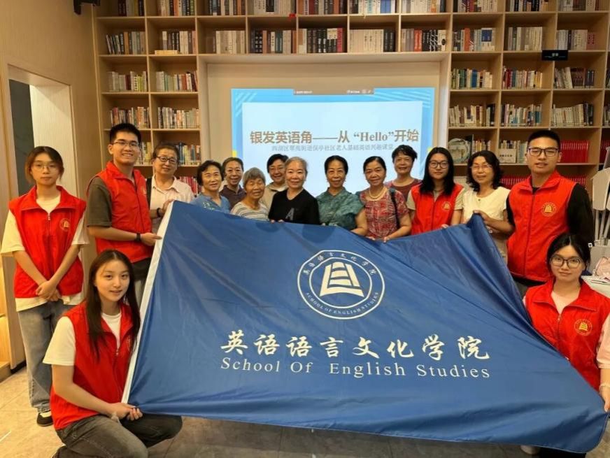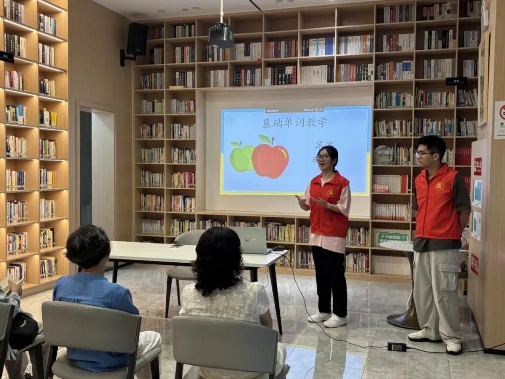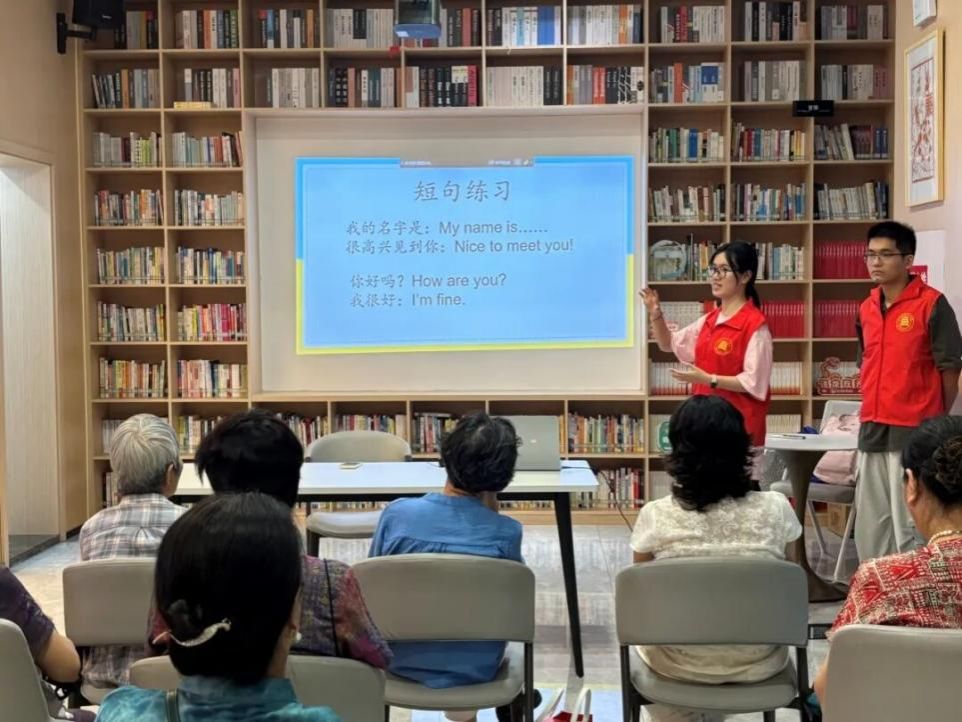 近日,“银龄乐学”2138cn太阳集团古天乐赴西湖书房实践团走进西湖区翠苑街道保亭社区西湖书房,开展了一场别开生面的“银发英语角”主题活动。团队成员充分发挥英语专业特长,为社区老年居民带来了一堂精彩纷呈的英语启蒙课,用实际行动践行新时代青年的社会责任与担当,助力老年教育共富与精神共富。