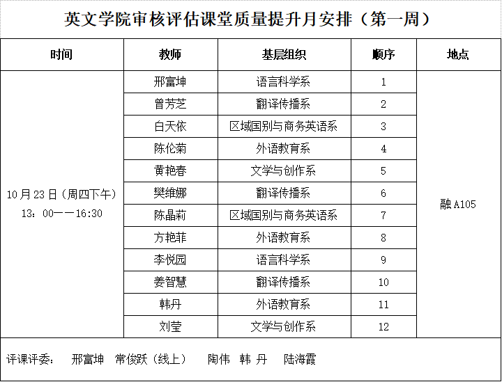 本学期英文学院的所有教学课程都纳入到活动范畴,本周有12位教师进行了汇报交流。