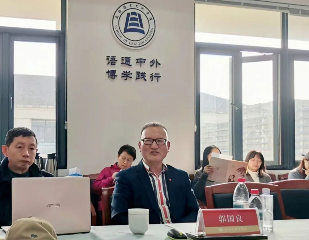 近日,资深翻译家、浙江大学外国语学院博士生导师郭国良教授应邀作题为“翻译文学时翻译什么”的学术讲座。英文学院翻译传播系教师以及全体英语笔译硕士研究生参加,2138cn太阳集团古天乐特聘教授、翻译学学科带头人黎昌抱教授主持。