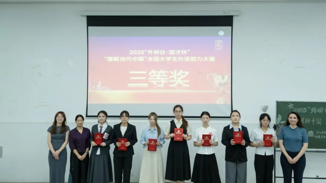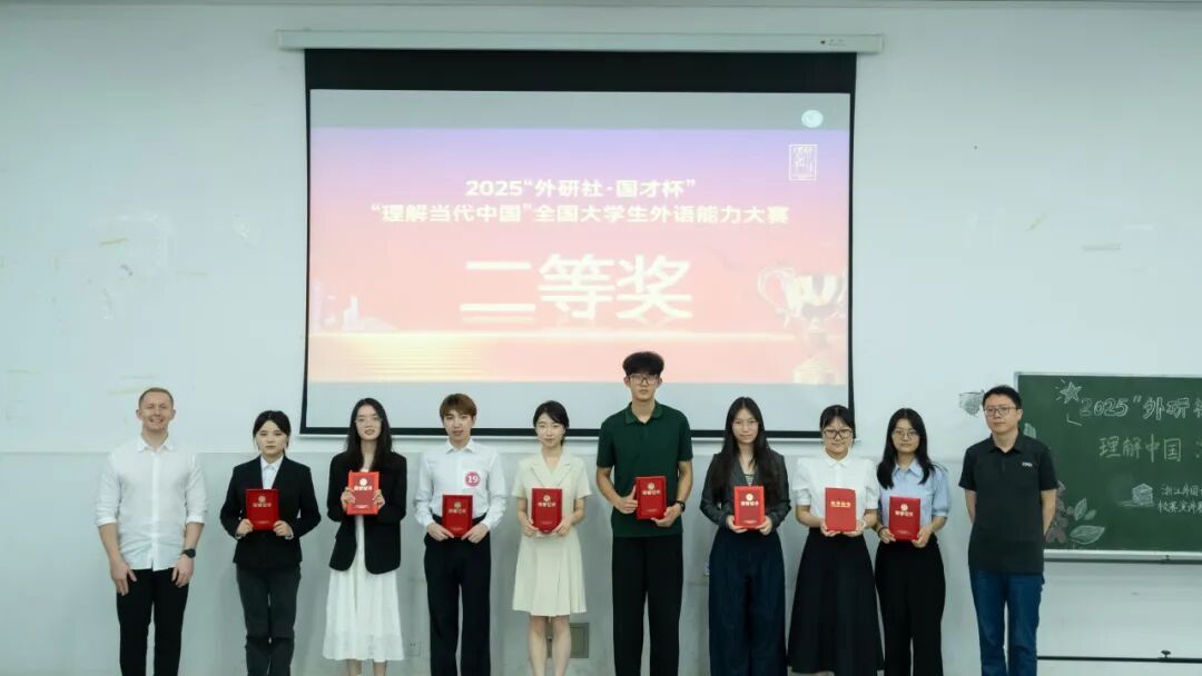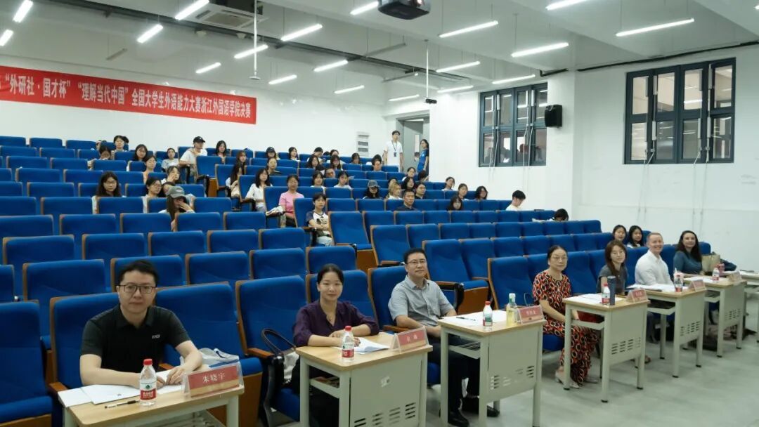 决赛特邀校内外专家组成评委团,其中包括浙江科技大学人文与外语学院院长樊燕龙、浙江科技大学人文与外语学院教授朱吉梅、浙江大学外国语学院副教授朱晓宇、浙江工业大学外国语学院教师童琳、杭州外国语学院高级教师王思雅,以及浙江财经大学的JACKMILES OAKLEY老师等。评委们从跨文化视角出发,与选手进行深入互动,进一步激发了思辨火花,选手们从容应对、对答如流,展现出新时代青年的自信与风采,赢得了观众们的阵阵掌声。赛事也受到英文学院领导的高度重视。