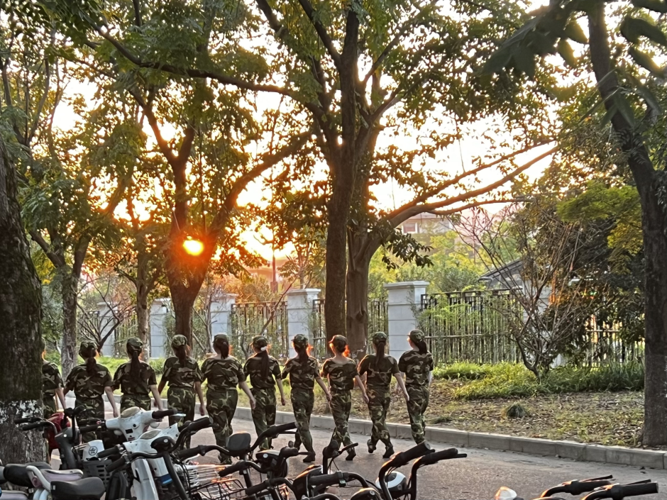 我们专注练习着齐步走、跨立、敬礼等一系列动作