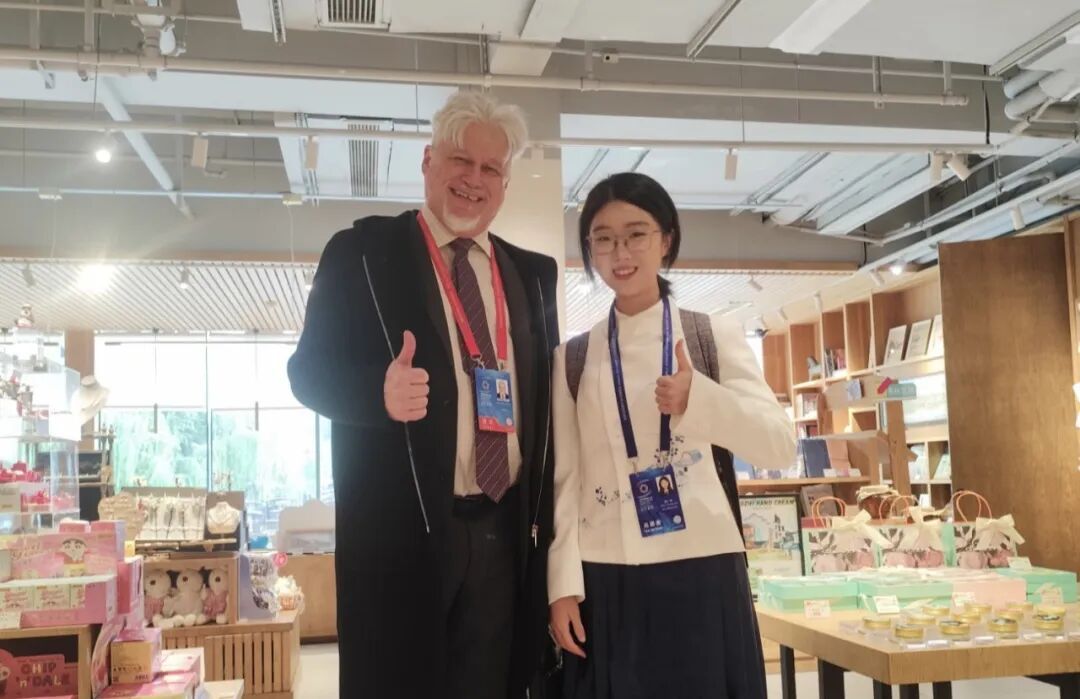 会议期间,23级英语专业的俞青青与联络员保持密切沟通,细致核对嘉宾的每日参会安排,做到提前提醒、及时告知,确保行程顺畅无误。面对嘉宾对江南水乡的好奇,她将历史传说和风俗民情娓娓道来,把一个个文化细节讲得生动有趣,赢得嘉宾频频点头称赞。“四天全程的陪伴参与,更让我在实战中迅速提升了跨文化沟通与协调能力。”俞青青说,“乌镇峰会为我打开了一扇窗,让我得以眺望更为广阔的世界,也让我更加坚定要继续运用自身的语言与跨文化交际能力,服务世界,连接更多元的文化!”