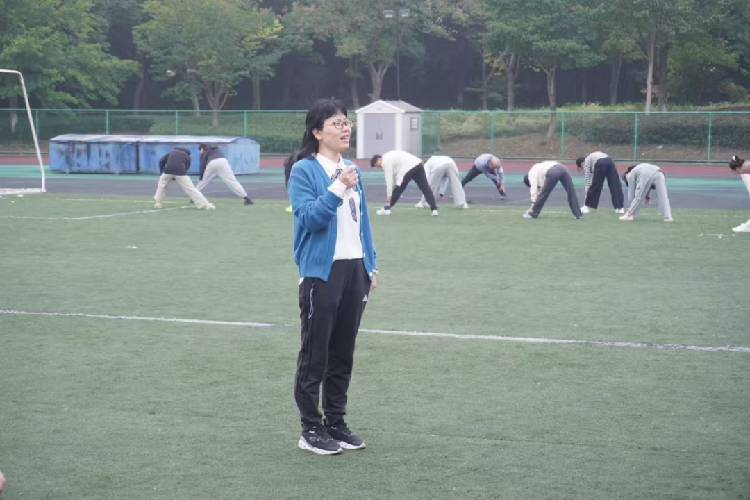 英文学院副院长、晨跑队领跑老师郑淑贞同样深有感触。她表示,从第一次集结到如今整齐的脚步声回荡在操场,每周二清晨与同学们并肩奔跑,早已成为她一周中最期待的温暖时刻。这不仅是体能的锻炼,更是一场师生同行、彼此激励的成长旅程。她愿始终做那个陪大家迎着朝阳出发的人——用脚步丈量青春,用汗水浇灌自律。看到越来越多同学主动加入、坚定坚持,她感到由衷欣慰,并希望最强“英“晨跑队不止于跑步,更成为一种精神象征:坚韧、阳光、永不言弃!