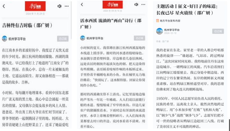 她的专业实践同样丰富多彩。曾作为主讲人出镜浙江日报“探美浙江”双语栏目;在小古城村拍摄的思政微课视频获潮新闻报道;也曾主持北京大学、浙江大学及我校留学生的4场交流会,在专业表达与跨文化沟通中不断提升自我。