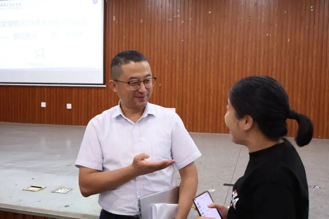 副院长郑淑贞以学院科研平台、学科梯队和研究生导师队伍为切口,全景呈现了学院“学科—科研—育人”一体化培养体系的强劲实力,让家长们对孩子选择英文学院深感放心。她鼓励新生先夯实专业基础,再跟随导师投身课题、项目和竞赛,把课程学深、把科研做活、把视野打开,在晨跑与晨读的节奏里跑出英文人的自信,在课堂与科研的熔炉里锻造核心竞争力,四年后交出一份家长放心、社会认可、自己骄傲的成长答卷。