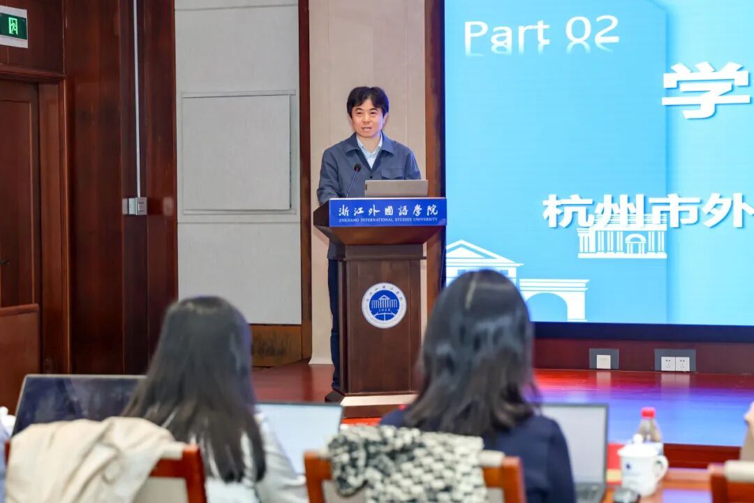 孙立春首先代表学会向浙外70周年校庆表示热烈祝贺,并作年度工作报告。报告总结了过去一年学会在组织建设、学术交流、科研成果及社会服务等方面的成就,并提出了未来工作思路与目标方向。杭州市外文学会副秘书长马庆凯公布了2025年度学会论文奖及科研课题评选结果,现场颁发了获奖证书和课题立项书。