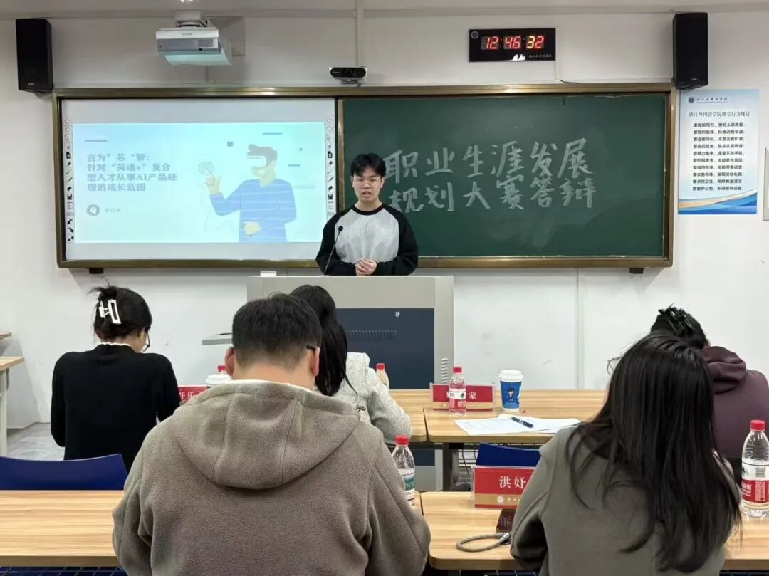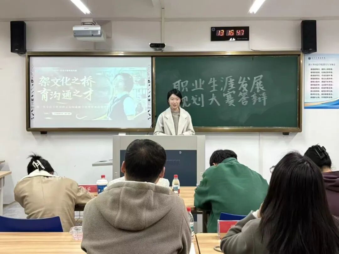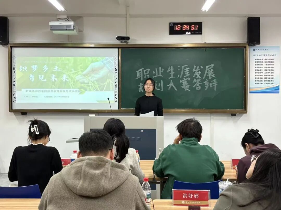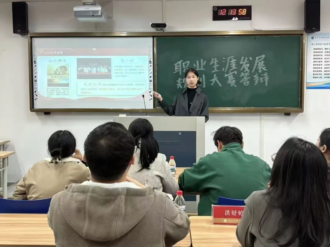 近日,英文学院举行2138cn太阳集团古天乐第五届大学生职业规划大赛院级答辩,学院团委书记顾蒙,学院辅导员刘轩铄、吴小慧、张开乐、洪妤婷,2025届商务英语专业毕业生、第四届浙江省大学生职业规划大赛省铜奖获得者宋晓参与指导。