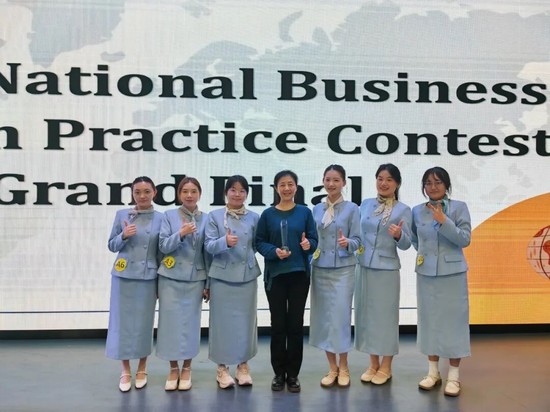 近日,2025全国商务英语实践大赛全国总决赛落下帷幕。在陆海霞老师的悉心指导下,英文学院23商英1班黄思甜、贾雨轩、张秋艳与23商英2班许峤琳、周莹莹、金欣嘉经过层层角逐,不断突围,在总决赛与广东外语外贸大学、上海对外经贸大学、四川外国语大学等5支队伍同台竞技,最终取得了全国总决赛二等奖的优异成绩。