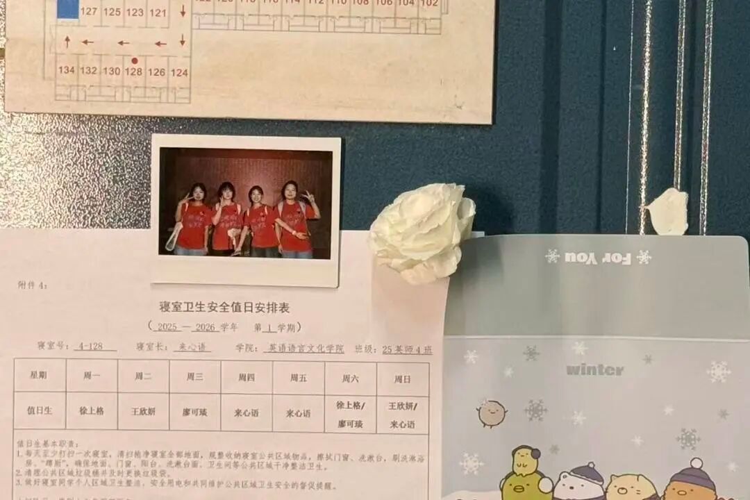 美好生活 尽显于“室” -英文学院寝室美化大赛成果展示- 四季轮转,时光如诗 我们为“家”打造的惊喜,也迎来了最终篇章 从初赛收下生活的巧思 到决赛集满文化的灵感 现在 请查收这份诚意满满的决赛风采“大片” 01.宿舍介绍 一等奖 雅致4-128 推开128的门,布置简约却不乏巧思 温馨舒适的居住感顷刻包裹着身心 玩偶与绿植吐露着温柔的日常心意 见证着我们朝夕相处的欢愉与岁岁年年 二等奖 雅仪5-316 雅仪5-110 寝室生活如同一部流动的温暖剧集 夜深灯暖时,细语在床帘间悄悄传递 白日明朗处,欢笑在阳光中轻轻跳跃 我们在这片小天地写下独属青春的诗句 也在相伴时光里读懂友谊柔软的意义 三等奖 雅仪5-205 雅仪1-603 雅致2-414 忙碌之时这里便切换成静音模式 有人戴着耳机默写单词,笔尖如细雨沙沙 有人对着镜子练习演讲,神情如正式登场 每个沉浸的时分都在为未来铺展道路 每阵轻轻的翻书声都是梦想静静发芽 优胜奖 雅致4-109 雅仪5-302 雅致4-121 雅致4-112 雅致4-124 雅正7-104 雅致4-111 02.寝室风采展示 恭喜以上寝室获奖 “寝”系时光,“宿”写年华 愿我们始终怀抱对生活的热忱 让独特的寝室文化继续生长 让这方小小天地 永远盛放友谊的芬芳,延续青春的温度