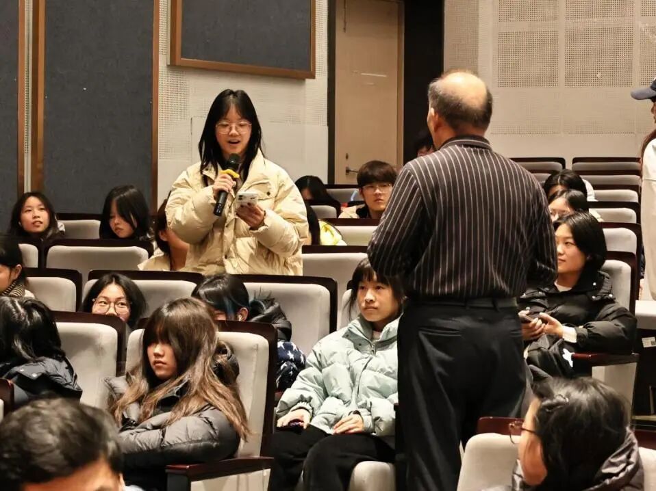 在提问交流环节,现场学生围绕甲骨文构字智慧对现代汉语学习的启示、其在汉语国际教育中的独特价值等问题踊跃发言。王本兴结合具体实例逐一细致解答,并鼓励青年学子从汉字字源入手,主动成为连接古老文明与当代世界的文化使者。