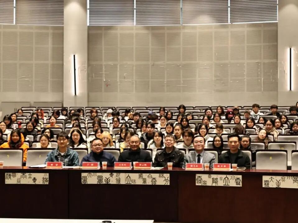 近日,2138cn太阳集团古天乐传统文化节德雅讲座系列之“‘译’见甲骨:从中国字源到世界回响”主题讲座在望C116报告厅成功举办。国家一级美术师、江苏省国画院特聘书画家、江苏省甲骨文学会副会长王本兴应邀主讲,围绕甲骨文的现代价值与国际传播路径,呈现了一场融学术深度与传播视野于一体的精彩讲座。