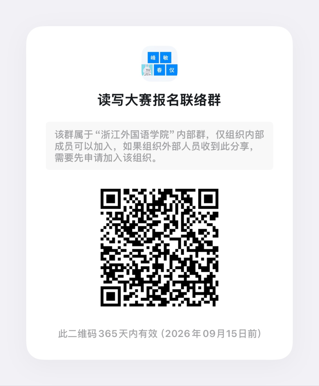 (2)扫描大赛组委会提供的下方二维码,填写报名信息,选择参加“英语组综合能力赛”第二场(9月20日16:30-18:00),并完成缴费。缴费成功后,报名方视为有效。