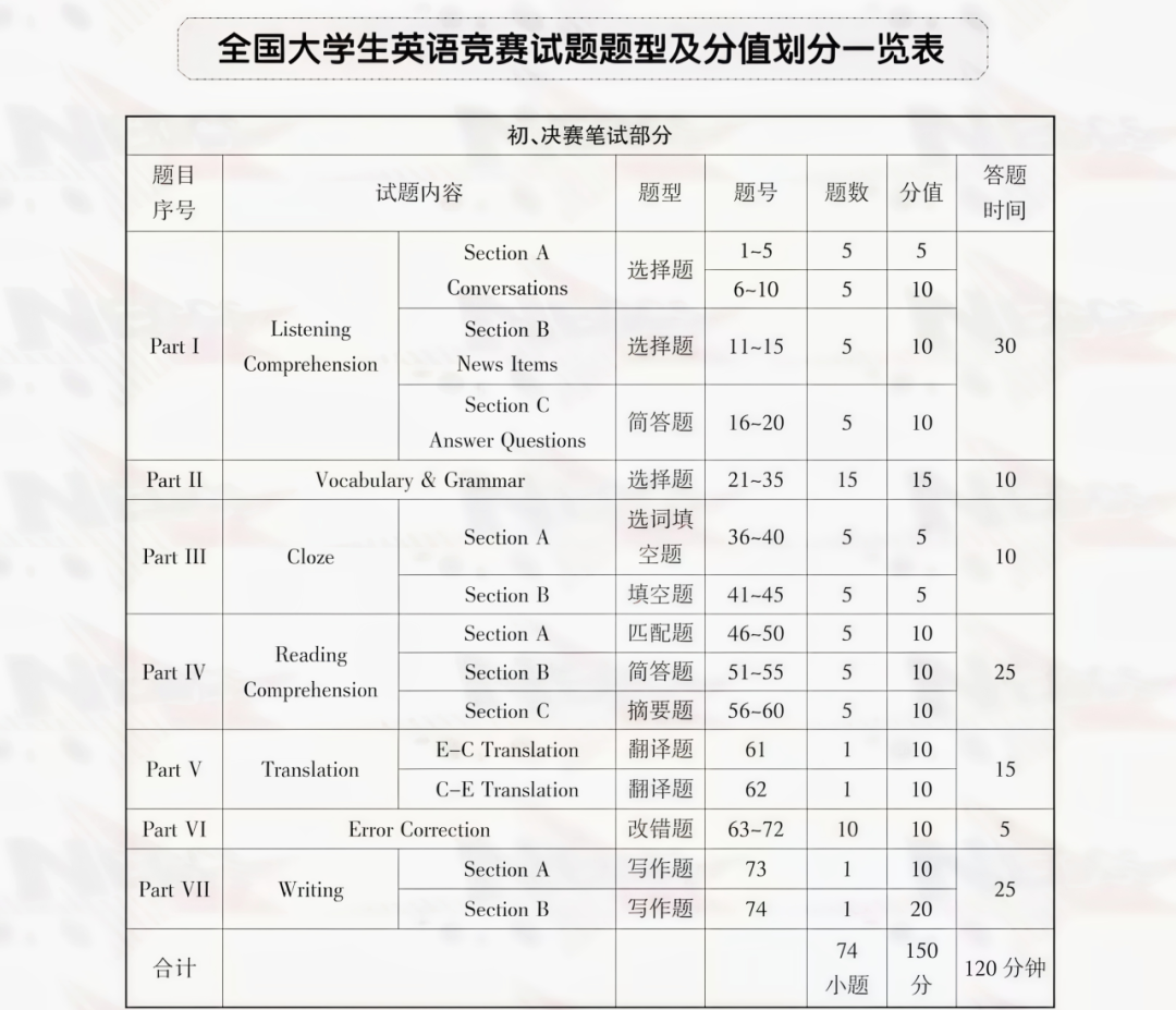 2.决赛评出:全国大学生英语竞赛特等奖、一等奖。