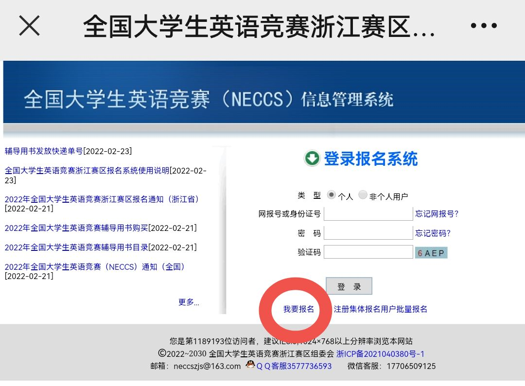 1) 扫码:扫码或输入neccszj.cn进入全国大学生英语竞赛浙江赛区官方网站。
