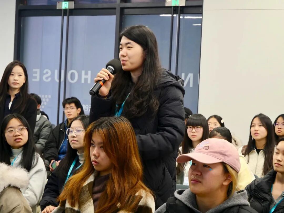 今年在西湖心辰入职的浙外毕业生魏嘉雯以自身经历现身说法,凭借自身浙江省优秀毕业生与上海大学新闻传播硕士背景,依托外语能力与创新实践力,在公司实现产品海外投放突破。她提到,文科 “理解人” 的核心优势在 AI 行业极具价值,内容创意、用户研究、Prompt 工程师等岗位均有适配空间,建议同学们通过玩转 AI 工具、积累实战作品、凸显核心价值切入赛道,借助 AI 放大自身创造力。随后,麦冬与魏嘉雯一起对同学们关心的问题进行了现场解答。