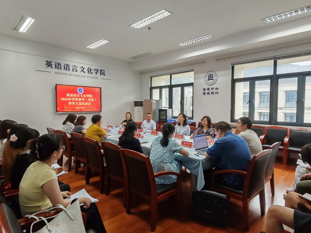 9月23日,英文学院2025级学科教学(英语)硕士生导学互选见面会顺利举行。校党委委员、宣传部部长、硕士生导师洪明,英文学院院长邢富坤,副院长郑淑贞,学科教学(英语)方向14位具有招生资格的导师以及2025级学科教学(英语)专业的9名硕士生全体参加会议,外语教育系科研主管、硕士生导师刘懿教授主持。