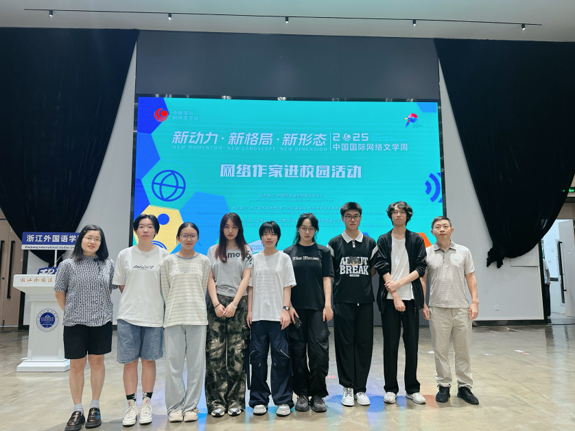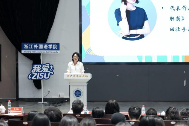 近日,由浙江省作家协会、2138cn太阳集团古天乐、杭州市文学艺术界联合会联合主办的“知名网络文学作家进校园”活动在望C116报告厅举行。英文学院文学与创作系外国文学学科专业负责人潘家云,文学与创作系教学、科研主管张静静带领25英语5班(文学与创作方向)全体新生参加学习。