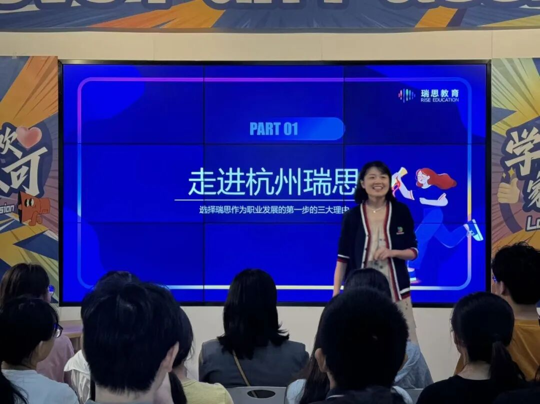 在宣讲环节,组织发展经理Suvi老师和学生们分享了走进瑞思的三大理由,她指出瑞思教育致力于培养3-12岁儿童的综合能力,通过素质教育帮助孩子成为敢于提问、勇于探索、自主学习、自我管理、自信表达的未来人才。同时,瑞思拥有一群充满生命力、相互激励的团队成员,重视共同目标下的协作与成长,营造开放、积极的工作环境。